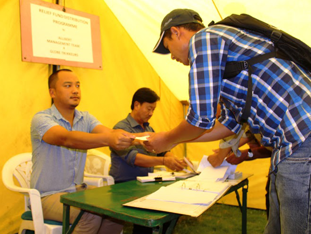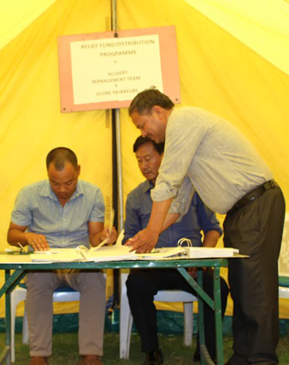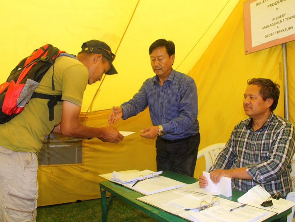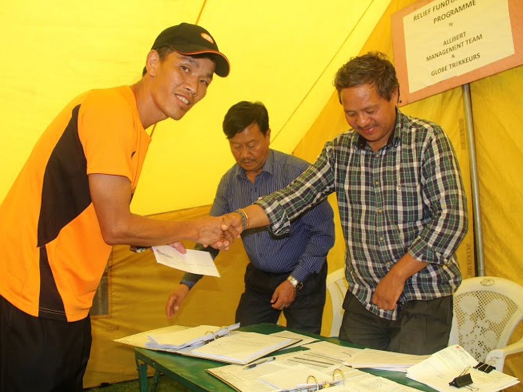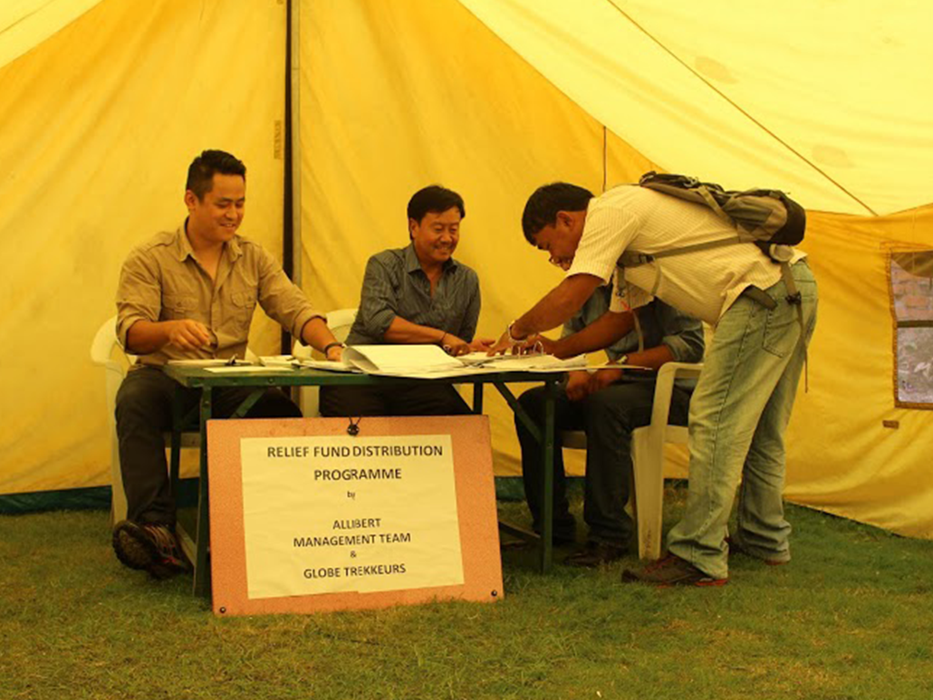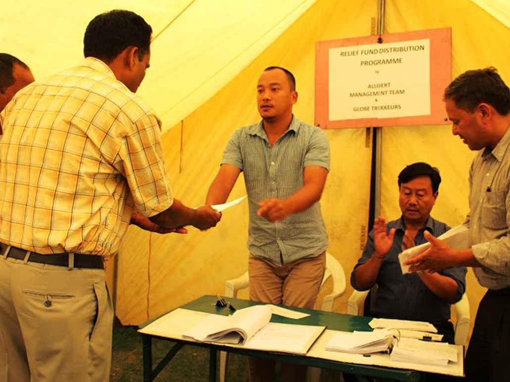 Some lost their family members, some lost their houses and many were injured. Since this is the most crucial time, with joint initiations from the foundation, ALLIBERT, their clients & Thamserku we provided immediate relief to more than 137 trekking guides, Sirdar, cook and many other staffs. These funds were distributed in Kathmandu; our team had also been to Lukla for fund distribution.